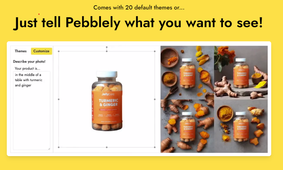 بالإضافة إلى ذلك، يتميز Pebblely بواجهة بسيطة وسهلة الاستخدام، مما يجعله مناسبًا للمبتدئين وغير المتخصصين في التصوير. يمكنك ببساطة تحميل الصورة، وتعديلها وتكبيرها أو تصغيرها، واختيار الخلفية المناسبة، وسيقوم Pebblely بتوليد الصورة المطلوبة بشكل سريع وفعال.